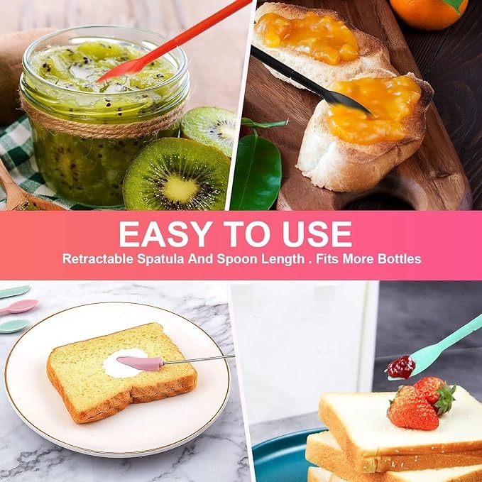 - UNIQUE SIZE DESIGN: small spatula and spoon with adjustable handle, you can adjust the length you want by stretching and shrinking, plus which can meet your various needs.