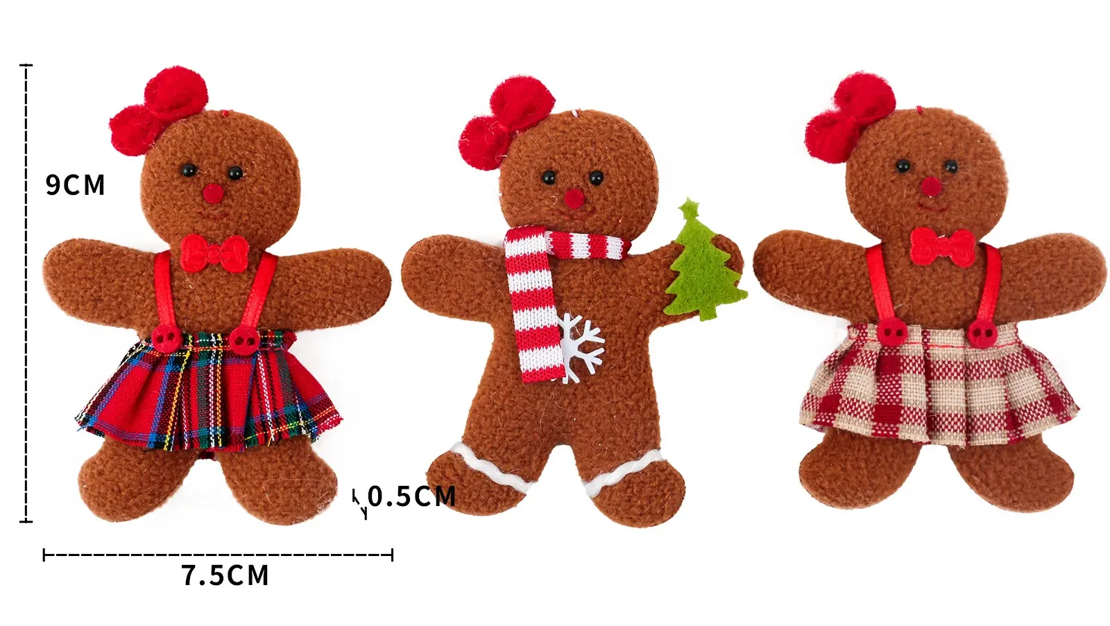 The Christmas gingerbread man doll ornaments are made of premium Plush, three-dimensional, and durable fabric. The Gingerbread doll is lightweight and soft, has fine workmanship, easy to hang.