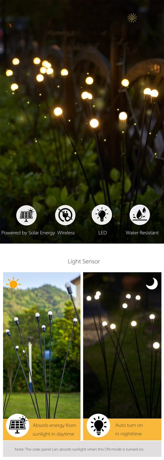 ⭐SWAYING WHEN WIND BLOWS:The most unique solar decorative lights in the market, our solar starbust swaying lights is propped by very soft & flexible wires, so the light sways when the wind blows, you will be thrilled to see how how the solar light “DANCING” when the wind blows