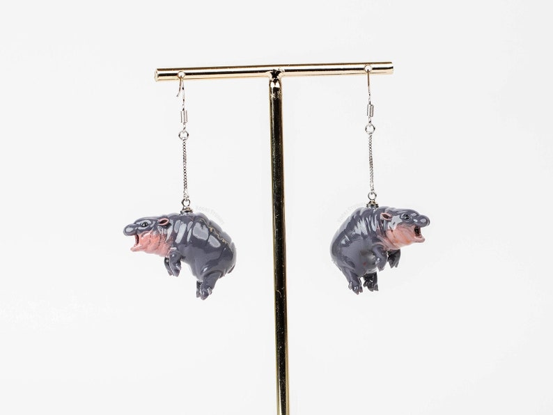 These handmade Moo Deng hippo earrings capture the cute, chubby features that fans around the world have come to love. Perfect for animal lovers and fans of quirky, attention-grabbing jewelry.
