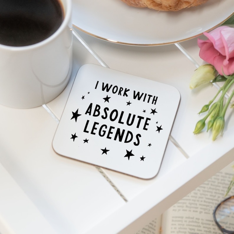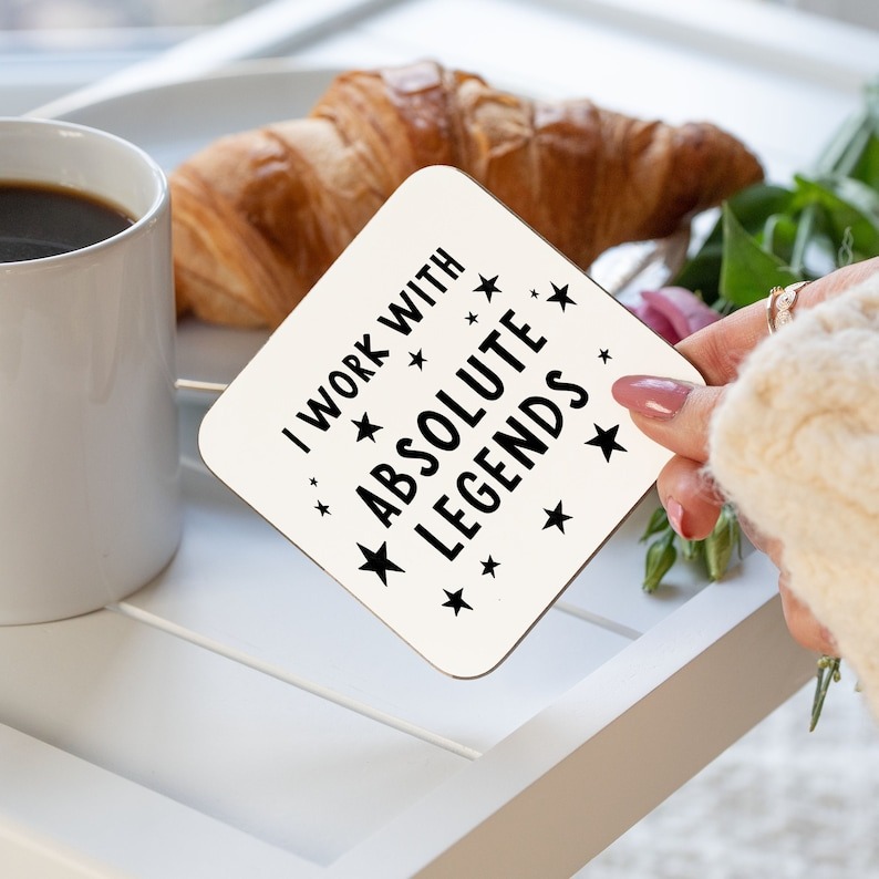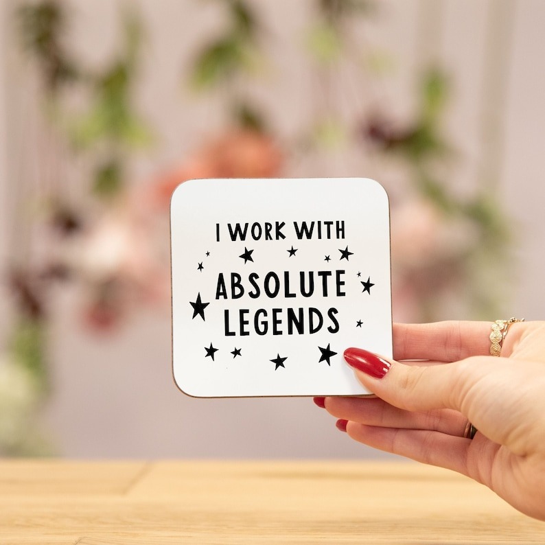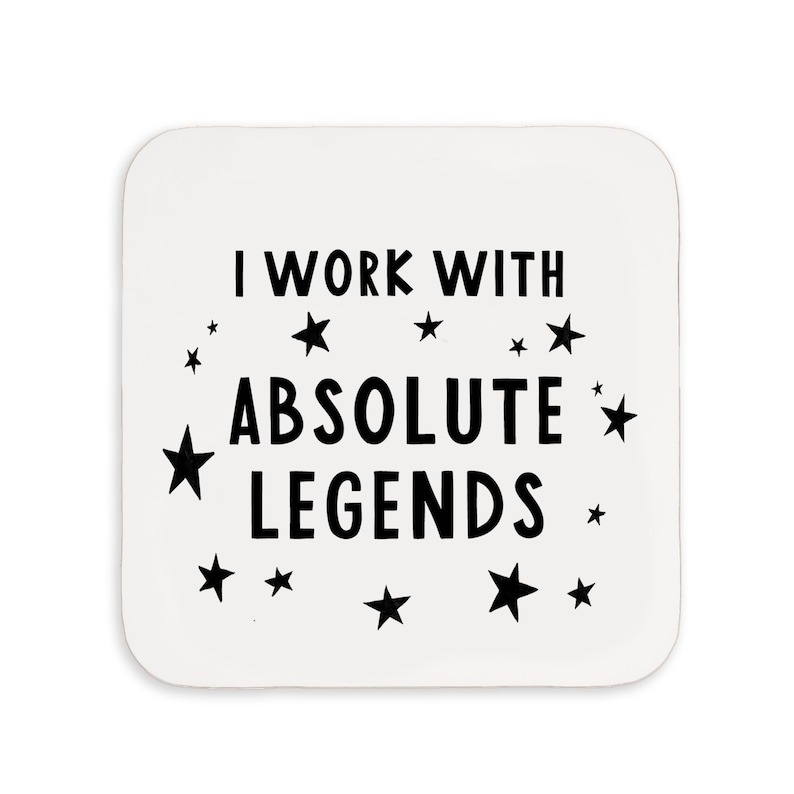 Square coasters decorated with illustrations as shown. A fun gift for a coworker - perhaps ideal for Secret Santa!