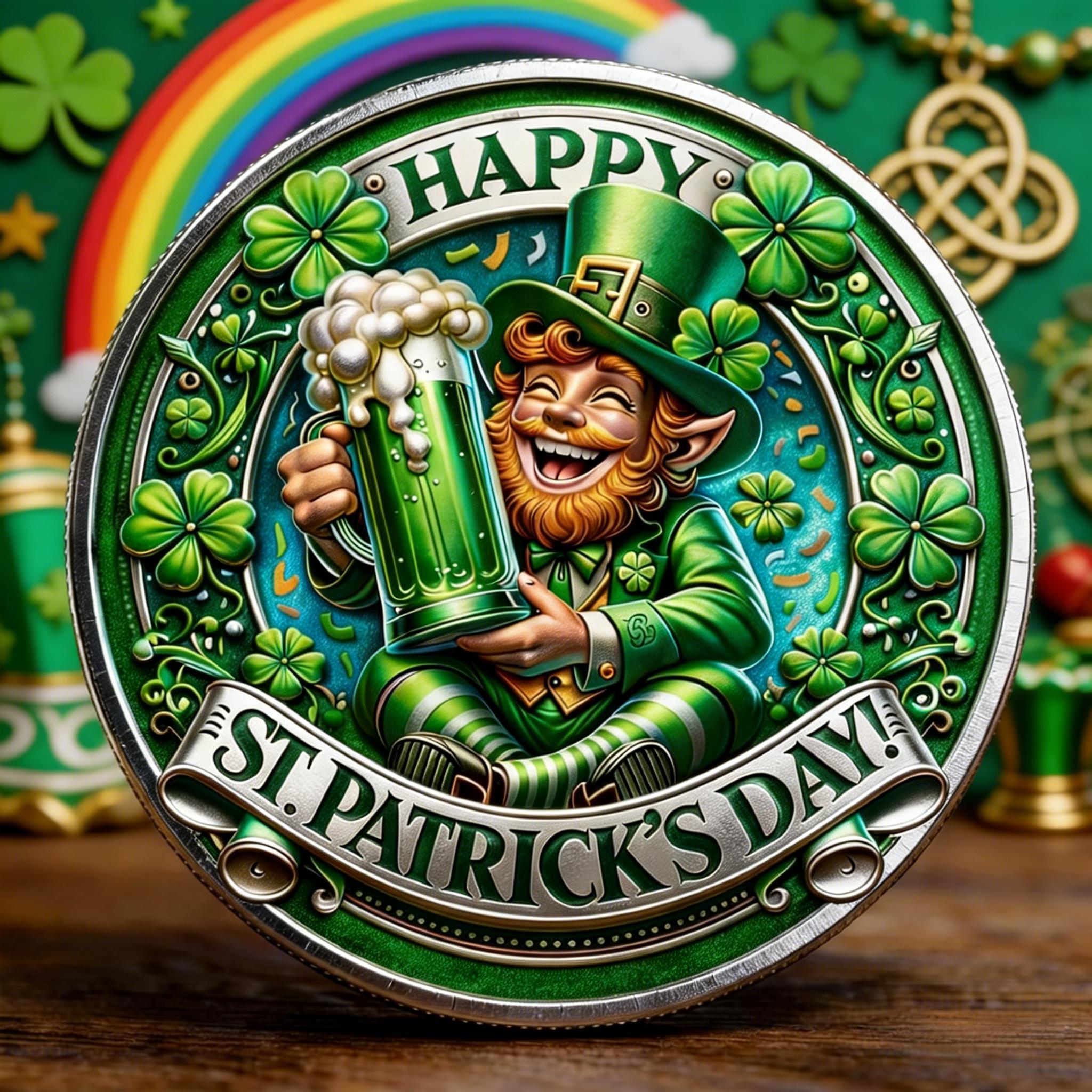 The bold inscription “HAPPY ST. PATRICK’S DAY” curves across the coin, making the celebration unmistakable.